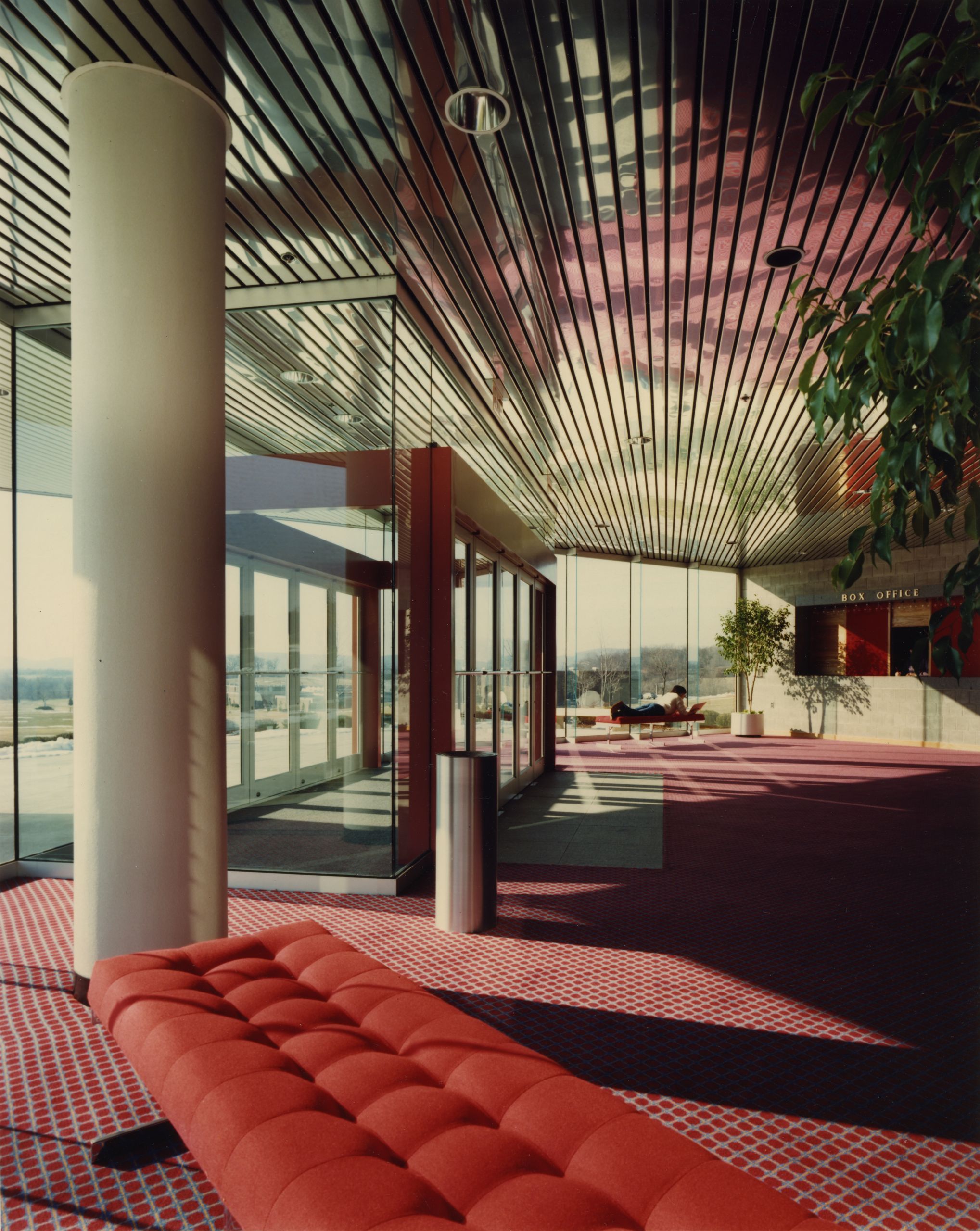 Breslin Architects received a “Design Citation” for this project from the American School and University’s Annual Awards Program. The Arts Center features a 490 seat proscenium theater designed for full scale performances. Excellent sight lines are achieved with a U-shaped plan of stepped seating and a balcony, whereby no seat is more than 35 feet from the stage. This configuration also allows the use of a semi-thrust stage when the orchestra pit is not in use. A 225 seat experimental black-box theater provides a variety of seating and performance arrangements, including the ability to transform the adjacent elevated dance studio into a large stage by opening a retractable wall between the spaces. In addition, the building includes a dance studio, faculty offices, costume and scene construction shops, and voice practice rooms.
