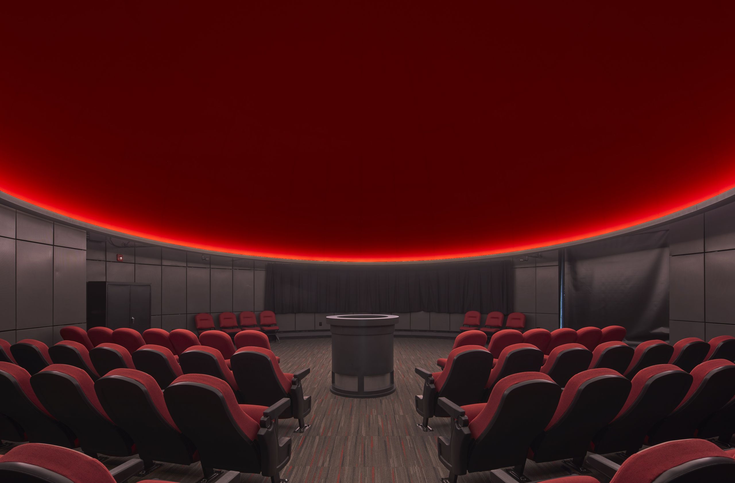 These two components are separated by an east/west concourse and an open ended courtyard which provides a visual connection to the site. This courtyard provides daylight to the North Facing Classrooms as well as creating a protected open space for outdoor learning. The courtyard is activated by a circular planetarium that anchors the western edge of the space and can be viewed from the school’s public concourse as well as the glass enclosed east/west concourse.