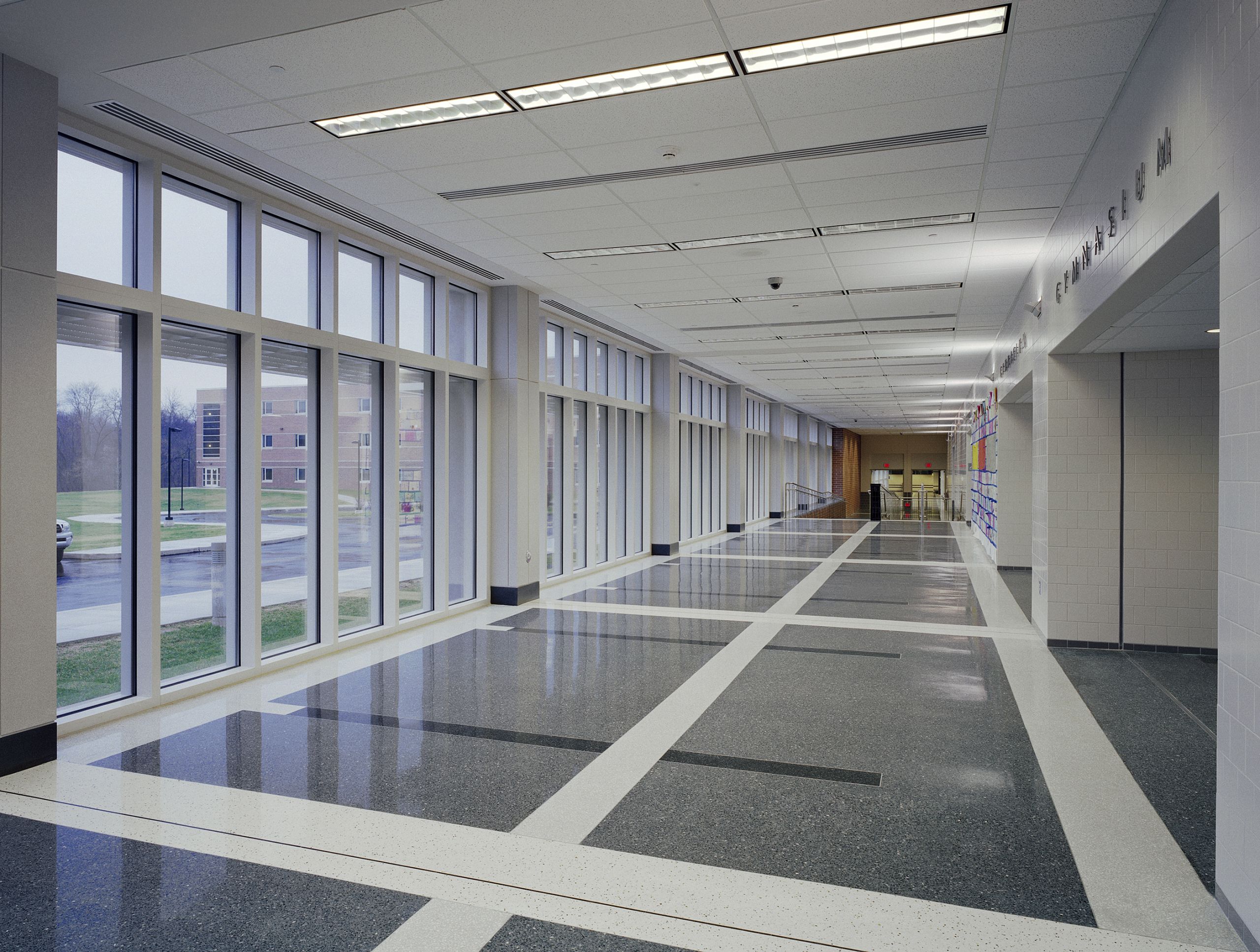 Breslin Architects received an award from the American Institute of Architects for the design of this project which involved the construction of a new Middle School adjacent to the existing Middle School. Following completion, the “old” school was vacated and partially demolished so that play fields could be developed. The existing Natatorium and Gymnasium Complex was retained, and physically attached to the new Middle School resulting in a state-of-the-art complex for 1,600 students in grades 5 through 8.