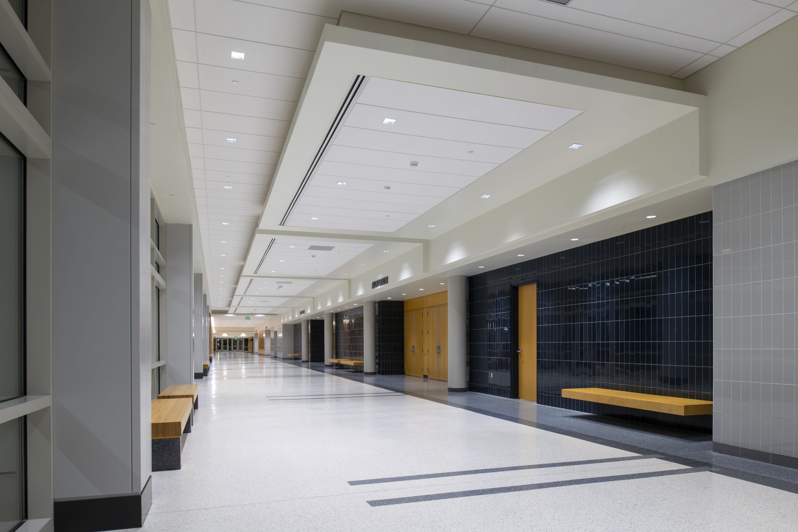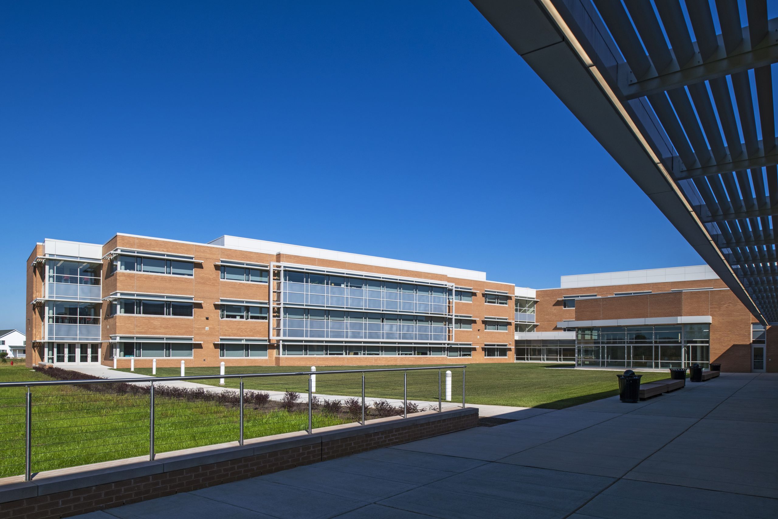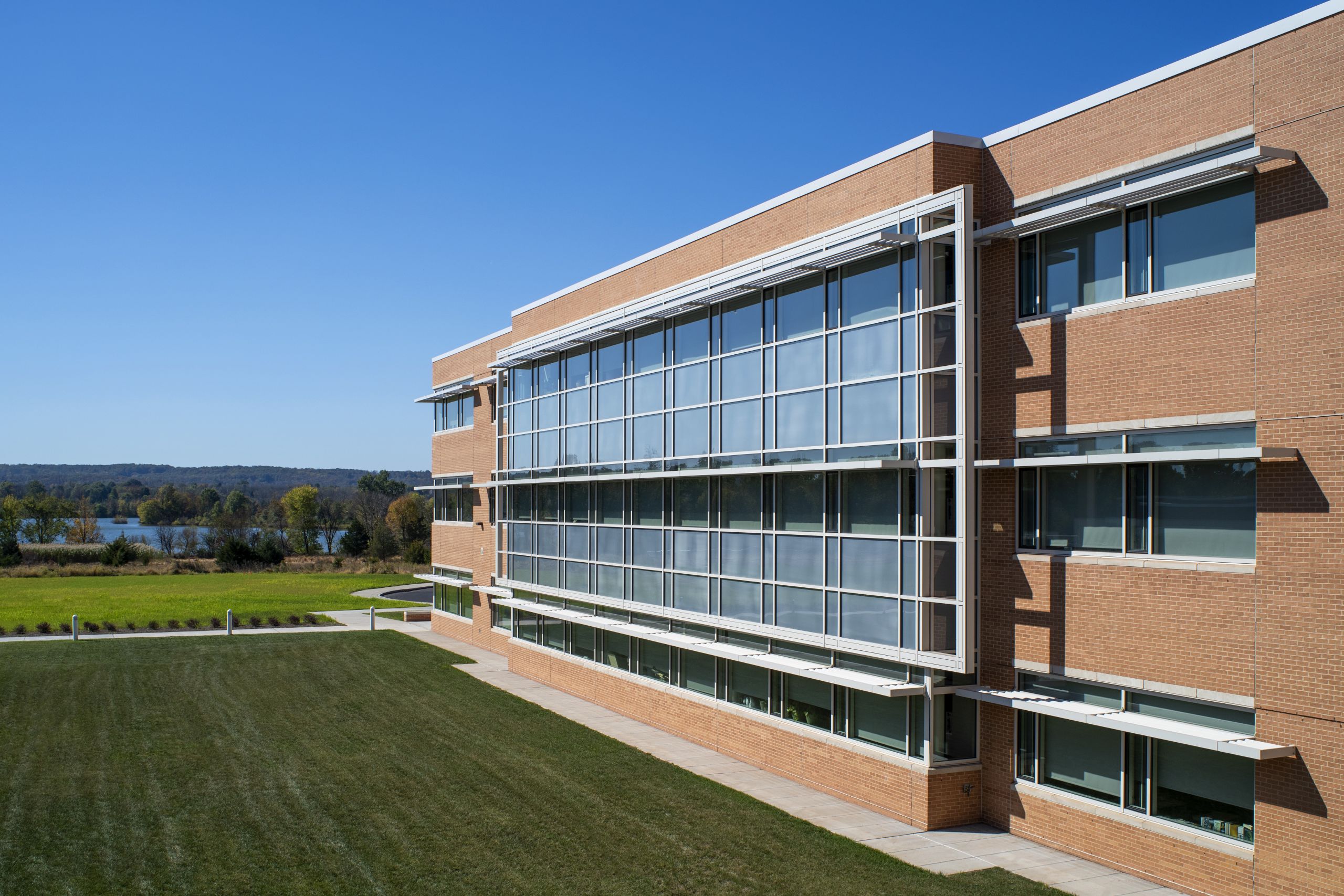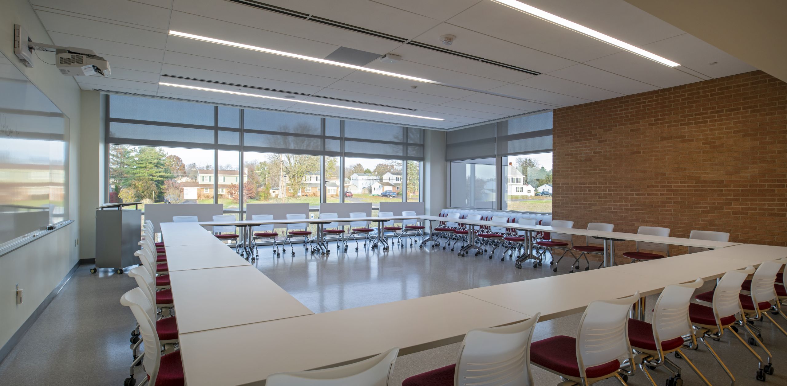 The form of this building evolved as a direct response to the predominant site feature – the Green Lane Reservoir which borders the edge of the site. The design intent was to forge a relationship between the building and the reservoir, with the three dimensional organization of the building becoming an embodiment of the site. The public functions of the building are organized along the eastern edge of the site, while the academic functions splay along a northwest axis in order to allow for expansive views of the reservoir and to capture maximum daylighting within the classroom spaces. The courtyard between these two building components embraces the reservoir and is hinged by an Administrative block along the northern edge. This Administrative block provides a public identity to the community at large. The Library anchors the composition at the heart of the building as it meshes with the site and reservoir beyond. The predominantly masonry construction with punched openings evolves into metal clad elements with expansive glazing and views to reinforce the connection to the reservoir. The project has been awarded LEED Gold Certification by the U.S. Green Building Council for incorporation of energy efficient systems, sustainable design principles, and site design features that support long term ecological balance. The new Middle School not only provides a state of the art facility for learning – the building itself is a tool for learning that fosters each student’s appreciation of the natural world.
